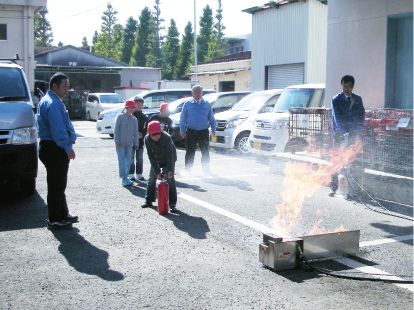 ショールームにて、防災に関するビデオを観たり、消火器の構造を知ってもらいました。